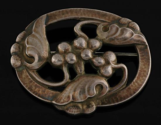 The sterling silver brooch with central grape and foliate design, style reference 101.