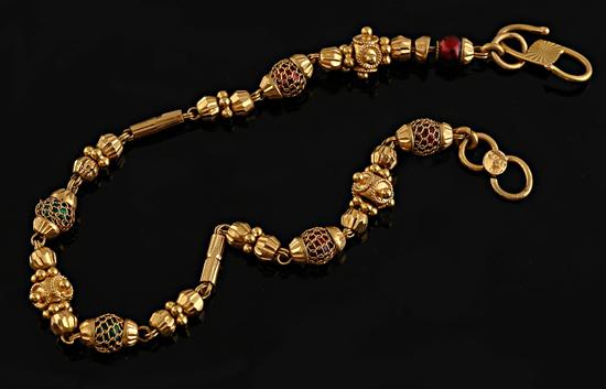 The fancy roundel, ball and link bracelet all in 22ct gold, total weight 9.0gms, total length 200mm.