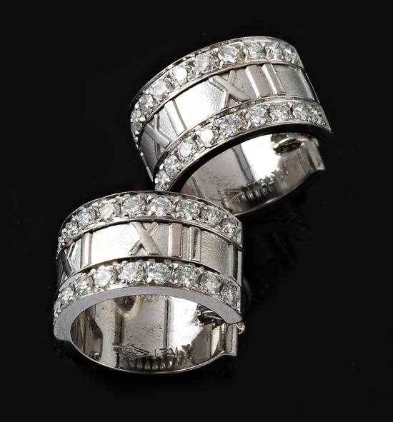 From the 'Atlas' range the hoop earrings set with Roman numerals within a double row of round brilliant cut diamonds, all in 18ct white gold, with box. See illustration.