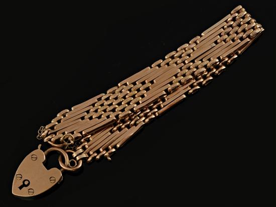 The gatelink bracelet with padlock clasp in 9ct rose gold, total weight 21.0gms, total length 190mm.