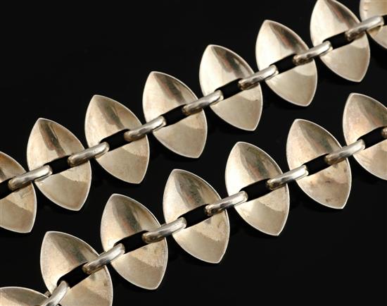 Designed by Nanna Ditzel, the modern links of eliptical form in sterling silver, style reference 106. See illustration.