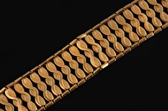 Comprising articulated twist style links with decorative detail, all in 18ct gold, total weight 45.0gms, total length 190mm.