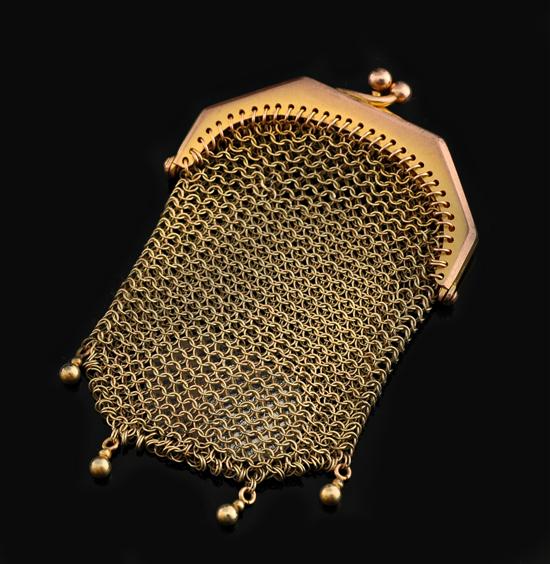 An Antique gold mesh coin purse