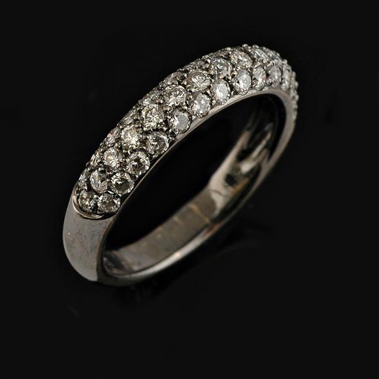 Comprising forty three round brilliant cut diamonds in pave setting totalling 0.50cts, all in 18ct oxidised white gold.