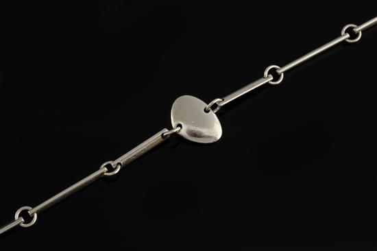 Having elongated baton links and pebble charms in sterling silver, style reference 445.