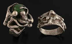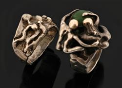Each of abstract figural design in sterling silver, one stone set, attributed to Matcham Skipper.