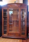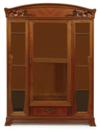 The arched pediment with nasturtiums and leaf carving above a central bevelled glass door and single frieze drawer flanked by two further shaped doors, raised on a conforming plinth base, 182 x 246 x 49 cm.