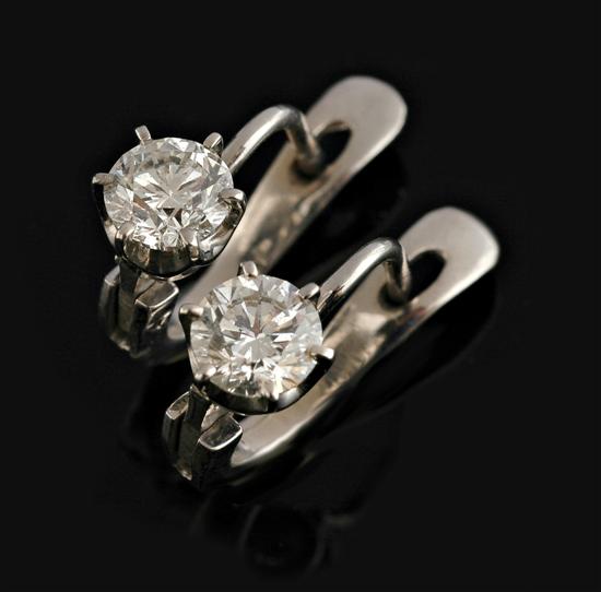 Each set with a round brilliant cut diamond weighing 0.58cts, totalling 1.16cts, all in 18ct white gold to continental post and clip fittings, independent valuation available.