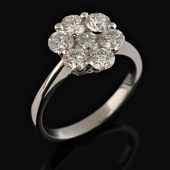 The floral cluster set with seven round brilliant cut diamonds totalling 1.70cts all in 18ct white gold.
