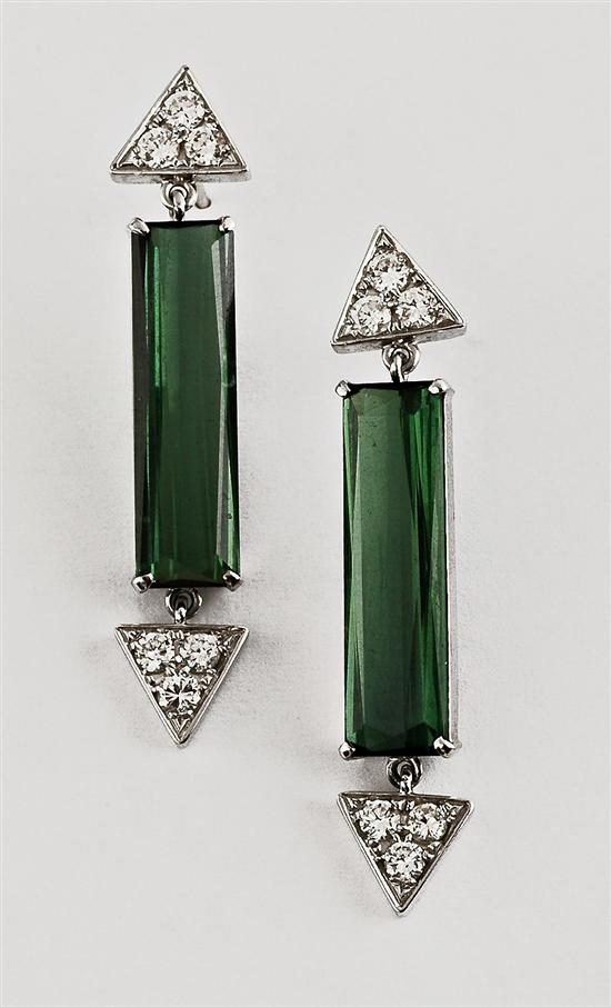 A pair of Art Deco style tourmaline and diamond earrings
