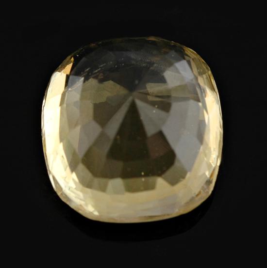 The yellow cushion cut natural sapphire weighing 19.95cts.