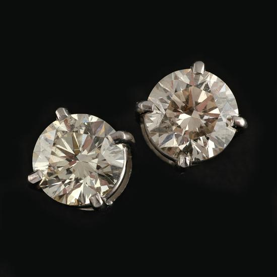 Each comprising a round brilliant cut diamond weighing 1.15cts totalling 2.30cts, all in 18ct white gold, to post and butterfly screw back fittings. See illustration.