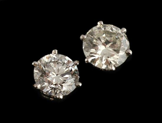 Each round brilliant cut diamond weighing 0.80cts claw set in 18ct white gold, to post and butterfly fittings.