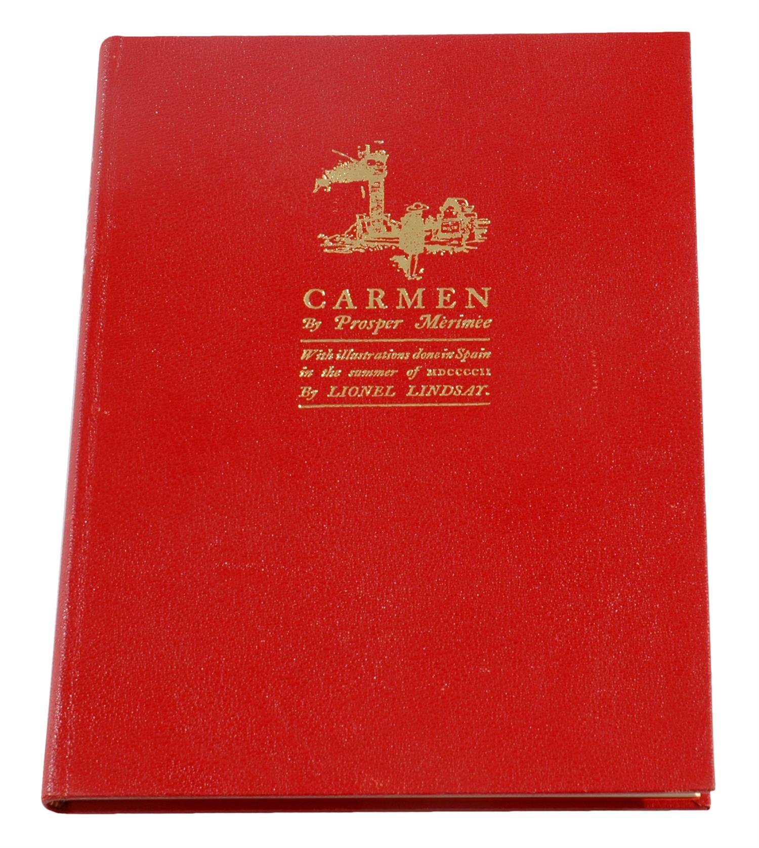Bound in red leather with gilt decoration, Illustrations by Lionel Lindsay
