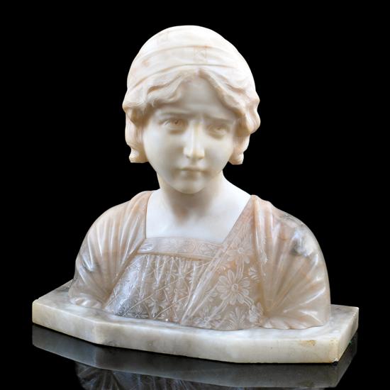 An Art Nouveau carved alabaster bust