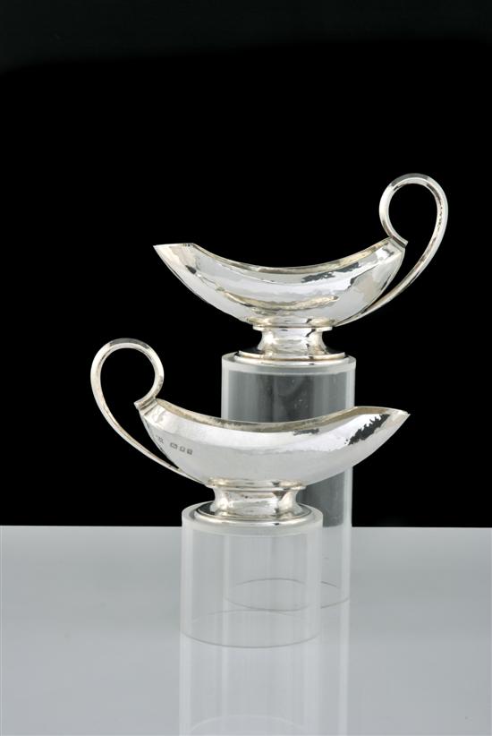 A pair of Omar Ramsden Arts and Crafts sterling silver sauce boats