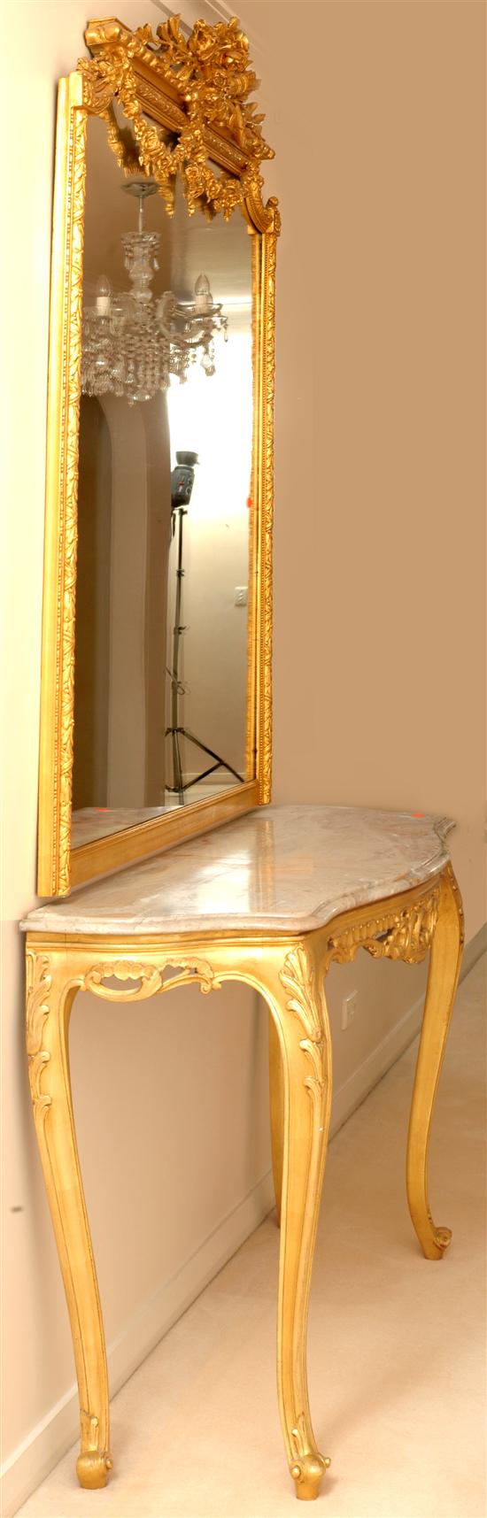 A fine quality French gilt wood pier mirror and console