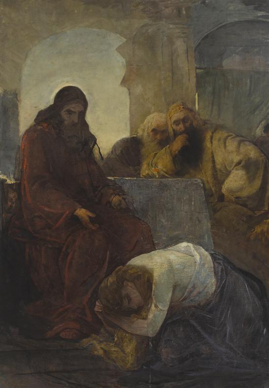 attached plaque notes that the work was restored by Johannes Gloeckner in 1967