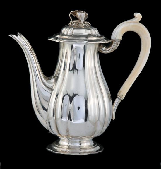 AN AUSTRIAN SILVER AND IVORY HANDLED COFFEE POT
