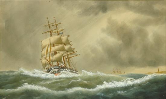Three Masted Clipper in Stormy Sea 1905