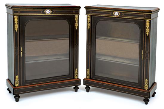 A fine quality pair of 19th century ebonised and amboyna pier cabinets