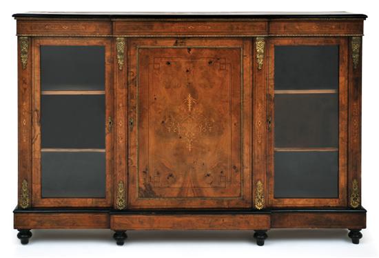 A fine Victorian burr walnut and ebonized breakfront bookcase