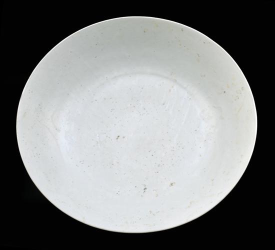 The large porcelain swatow ware platter displaying the impression of an original blue pattern to the interior on a white ground and with Christies label to base; Binh Thuan 20891, 41.5 cm diameter.