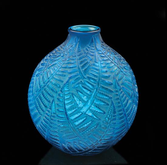 A Rene Lalique 'Espalion' pattern blue glass vase