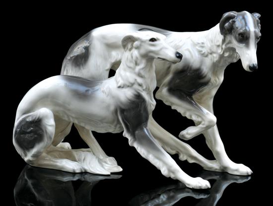 A large Goldscheider Borzoi dog group