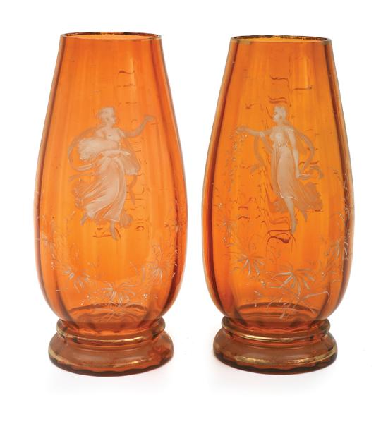 A large pair of Mary Gregory tangerine glass vases