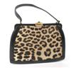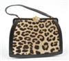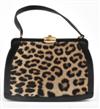 The chocolate leather bag with leopard skin front panel and gold metal hardware, 34 x 24cm.