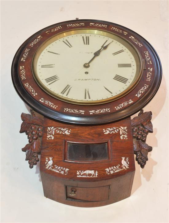 A late Victorian mother of pearl inlaid drop dial wall clock
