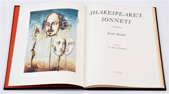 Shakespeare's Sonnets, A Selection; Foreword by Sir Robert Helpmann, Lansdowne Press, Melbourne, 1979, bound in full black morocco leather, decorated in gilt, containing 25 lithographic plates by artist & actor Keith Michell, limited edition numbered 57 of 500, signed by the artist