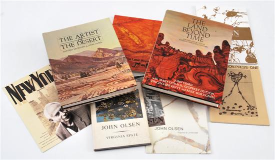 including: Olsen, Durack, Dutton, Serventy and Bortignon, The Land Beyond Time A Modern Exploration Of Australia's North-West Frontiers, Macmillan Australia, Melbourne, 1984; and Spate, Virginia, John Olsen, Georgian House, Melbourne,1963, signed inside by John Olsen and eight others (10)