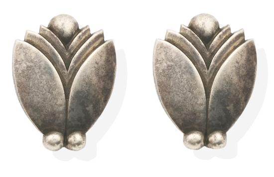The sterling silver earrings of geometric floral design, to clip fittings, in sterling silver, reference 106.