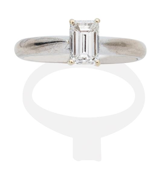 The emerald cut diamond weighing 0.70cts, claw set in 18ct white gold, independent valuation available, ring size L-M.