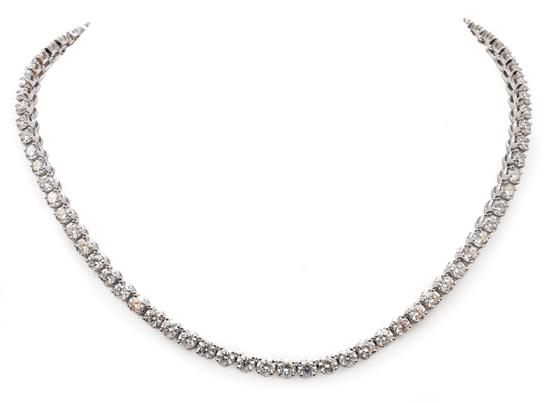 Comprising eighty one round brilliant cut diamonds totalling 27.61cts in four claw settings, in 18ct white gold, total length 425mm, independent valuation available.