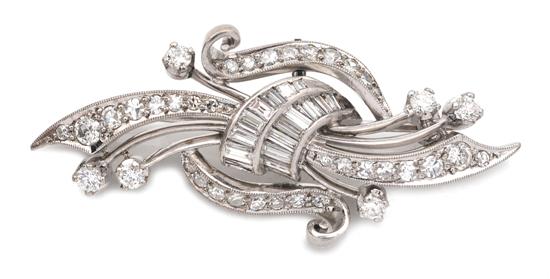Set with round brilliant and baguette cut diamonds, in 18ct white gold and platinum.