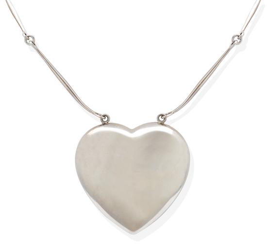Designed by Astrid Fog, the large heart pendant suspended on elongated baton link chain in sterling silver, reference 126.