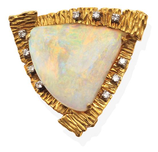 An opal and diamond brooch