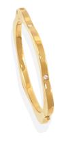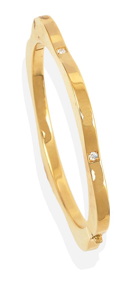 From the '4810' collection, the scalloped hinged bangle set with four round brilliant cut diamonds, in 18ct gold, boxed.