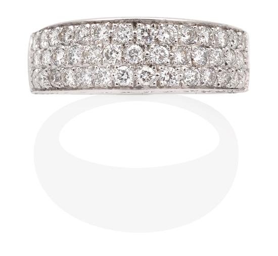 The squared band pave set to the top and sides with round brilliant cut diamonds totalling 1.82cts, in 18ct white gold, independent valuation available, ring size Q-R.
