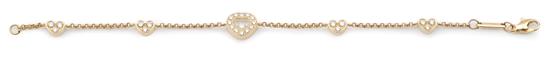 From the 'Happy Diamonds' range, comprising heart shaped diamond set charms, one encasing a floating diamond, on a fine belcher link chain, in 18ct gold, total length 175mm, boxed.