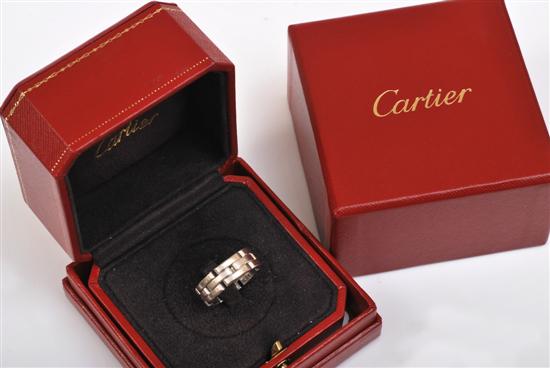 From the 'Mallion Panther' range, the full circle of rectangular links in 18ct white gold, boxed, ring size U-V.