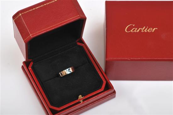 AN AQUAMARINE TANK RING BY CARTIER