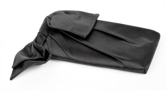The envelope shaped clutch pleated to one end and finished with an oversized bow, 26 x 14cm.