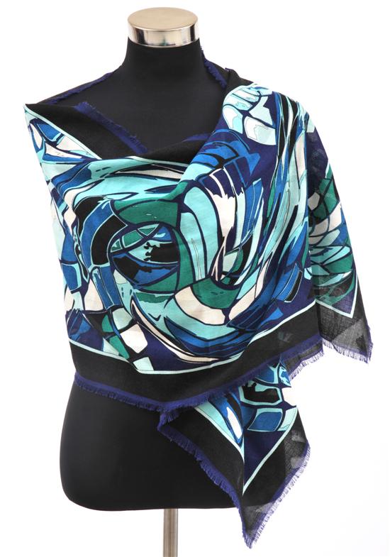 The rectangular scarf printed in a fushia, magenta and black design, 32 x 175 cm.