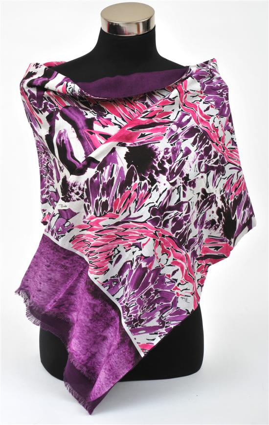 The rectangular scarf printed in a pink and magenta design, 33 x 175 cm.