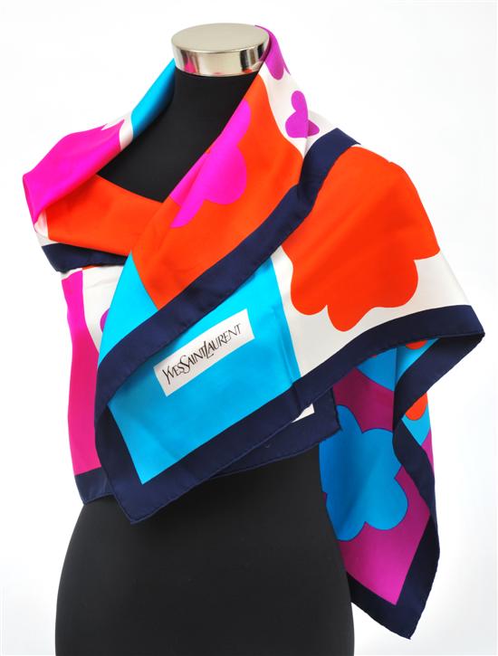 The square scarf printed with a bold checked and floral silhouette pattern, 88cm square.