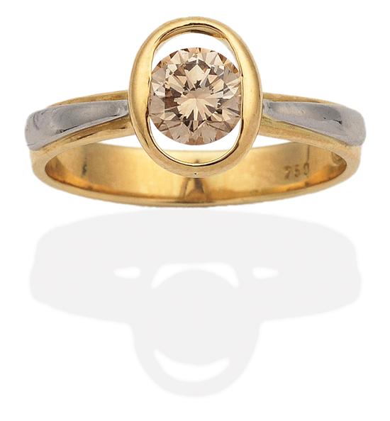 A solitaire cognac diamond ring by Leonard Baker